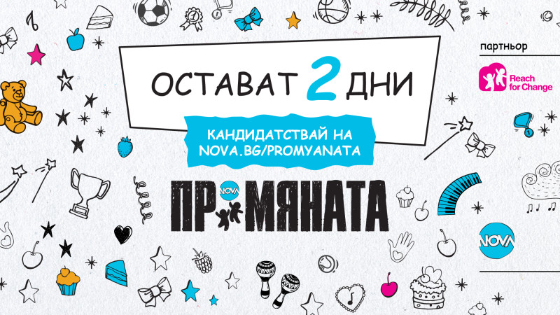ПРОМЯНАТА е най-голямата социално отговорна инициатива на Нова Броудкастинг Груп, която се осъществява в партньорство с Фондация Reach for Change България. Тя цели да подобри живота на децата и младежите в България, като открива мотивирани социални предприемачи и им помага да осъществят идеите си на практика.